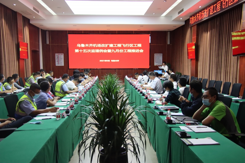 9月3日上午,烏魯木齊國際機場改擴建工程飛行區(qū)第十五次監(jiān)理例會暨九月份工程推進會順利召開。此次會議由烏魯木齊臨空開發(fā)建設(shè)投資集團有限公司、烏魯木齊國際機場改擴建工程建設(shè)指揮部、烏魯木齊臨空中建機場建設(shè)運營有限公司、8家場道施工單位,3家監(jiān)理單位、2家第三方檢測單位以及相關(guān)參建單位的負(fù)責(zé)人、項目經(jīng)理參加。