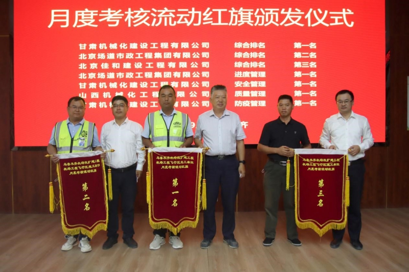 此次會議對施工單位八月份的相關(guān)工作進行了綜合考核,我司烏魯木齊機場項目經(jīng)理部在8家施工單位評比中獲得綜合第一名、安全第一名、防疫第一名的好成績,得到了業(yè)主方、擴建指揮部及監(jiān)理單位的一致認(rèn)可。同時會議對九月份全場飛行區(qū)工程的相關(guān)工作進行了部署,下達了各標(biāo)段施工任務(wù)。